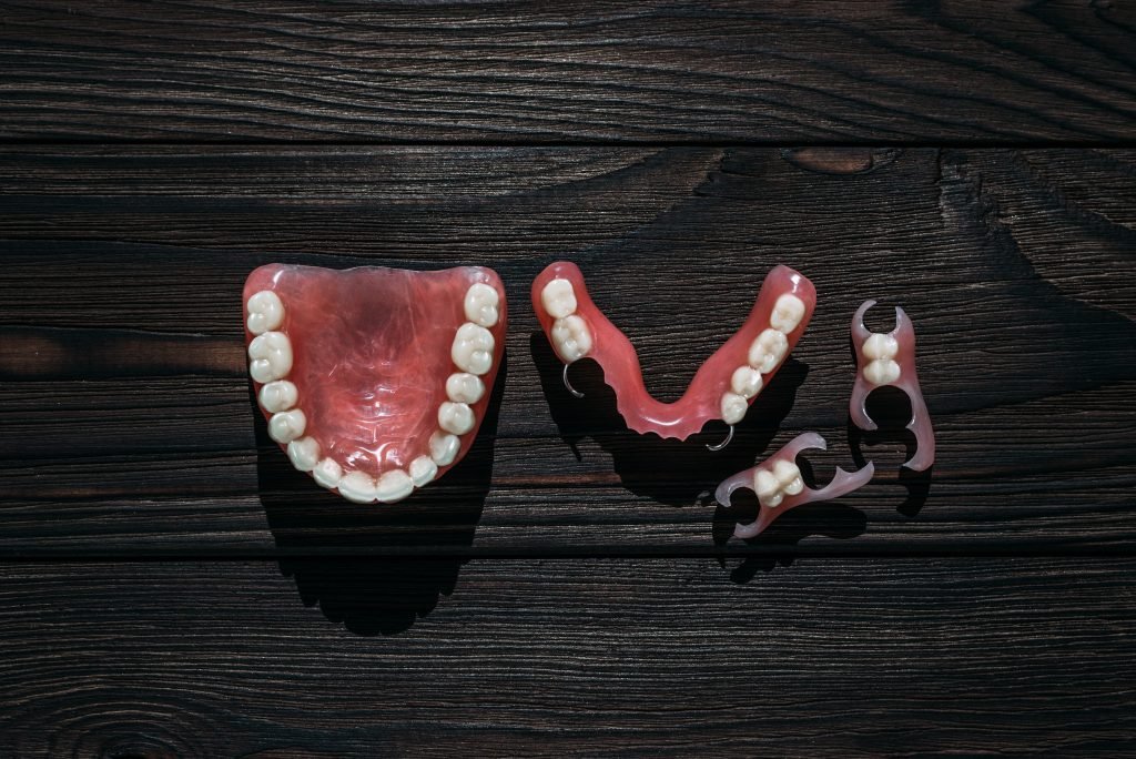– 局部義齒通常由金屬框架和人工牙齒組成,金屬框架固定在剩餘的天然牙齒上。